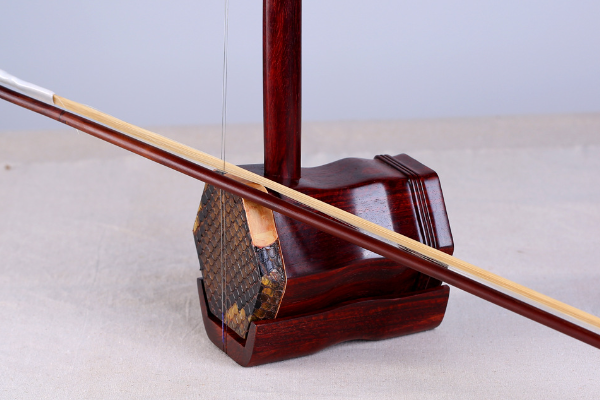 二胡基本上都是木质的,整体由琴杆、琴筒、琴轴等基本部件构成。二胡的琴筒有圆形、六角形等多种形状,琴筒的一端蒙有蛇皮或蟒皮,另一端则设置雕花的音窗。在乐队中,二胡作用很大,它既能独奏,也适合合奏。