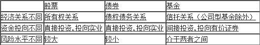 股票反映的是一种所有权关系,是一种所有权凭证,投资者购买股票后就成为公司的股东;债券反映的是债权债务关系,是一种债权凭证,投资者购买债券后就成为公司的债权人;基金反映的则是一种信托关系,是一种受益凭证,投资者购买基金份额就称为基金的受益人。