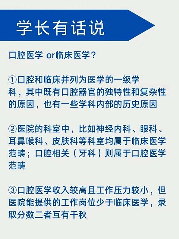 ③口腔医学收入较高且工作压力较小,但医院能提供的工作岗位少于临床医学,录取分数二者互有千秋。