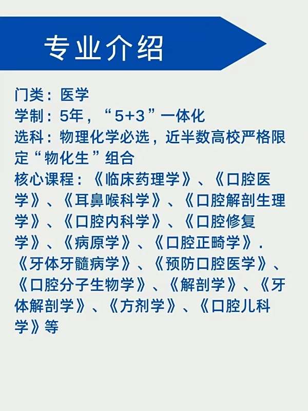 门类:医学;学制:5年,“5+3”一体化;选科:物理化学必选,近半数高校严格限定“物化生”组合。