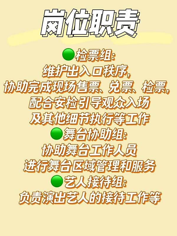 维护出入口秩序,协助完成现场售票、兑票、检票,配合安检引导观众入场及其他细节执行等工作