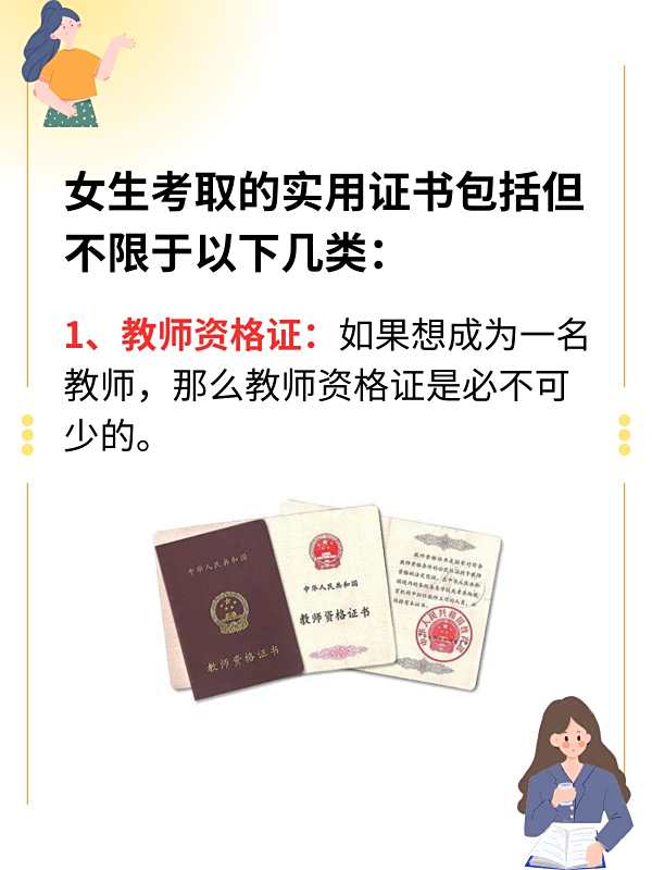 1、教师资格证:如果想成为一名教师,那么教师资格证是必不可少的。