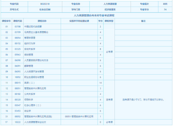 人力资源自考本科每个学校可能存在一定的差异,主要设置以下基本课程: