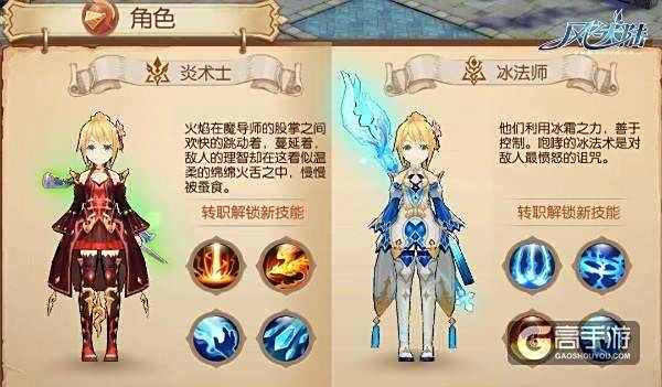 转职以后分为炎术士和冰法师。炎术士以能燃尽一切的红莲之火焚烧对手,并且可持续火焰伤害。冰法师利用冰霜之力,善于控制,咆哮的冰法术是对敌人最无情的诅咒。