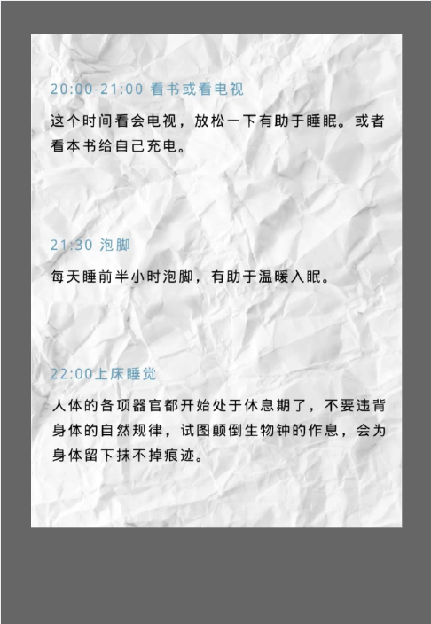 人体的各项器官都开始处于休息期了,不要违背身体的自然规律,试图颠倒生物钟的作息,会为身体留下抹不掉痕迹。