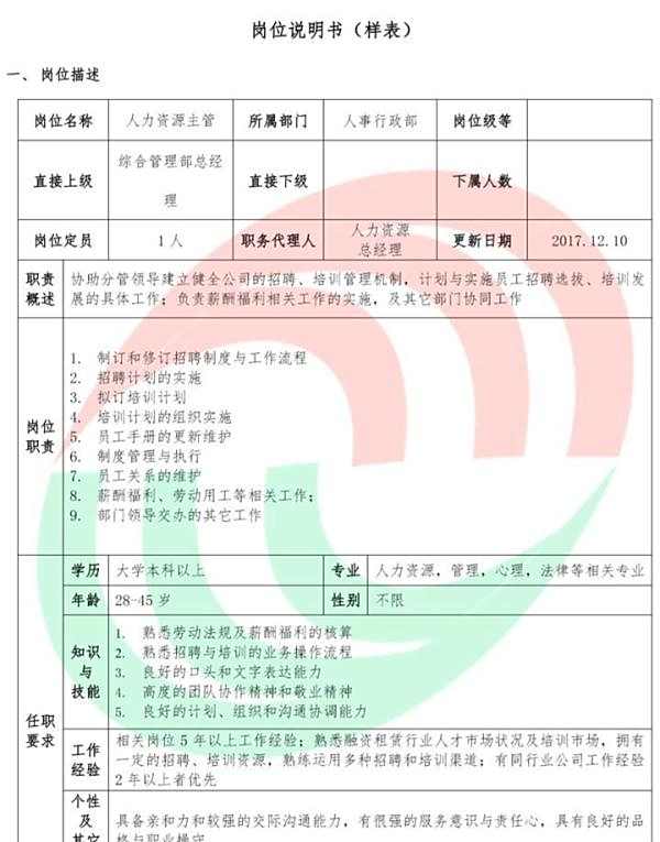 以下是该说明书中的一个样表,以人力资源主管为例:
