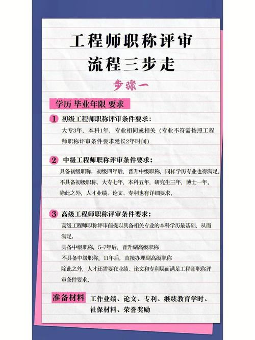2、工作经验:需要一定的工作经验,一般是指在相关领域从事专业工程技术工作的时间。具体要求可能根据不同的职称级别和国家/地区的规定而有所不同。