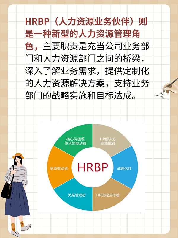 HRBP(人力资源业务伙伴)则是一种新型的人力资源管理角色,主要职责是充当公司业务部门和人力资源部门之间的桥梁,深入了解业务需求,提供定制化的人力资源解决方案,支持业务部门的战略实施和目标达成。