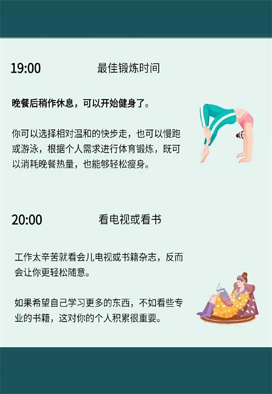 20:00看电视或看书工作太辛苦就看会儿电视或书籍杂志,反而会让你更轻松随意。