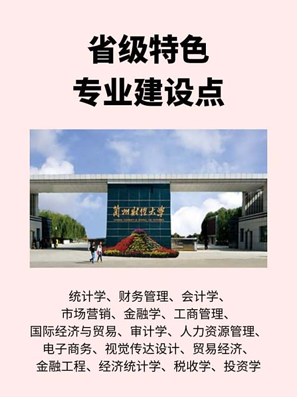 兰州财经大学王牌专业有金融工程、商务英语、金融学、国际经济与贸易、统计学、会计学、财务管理、视觉传达、税收学、市场营销等,算是比较好的专业了