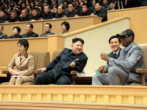 据说,罗德曼和朝鲜最高领导人金正恩的私交很不错,2014年1月访朝时,他还亲自为金正恩献唱生日快乐歌。