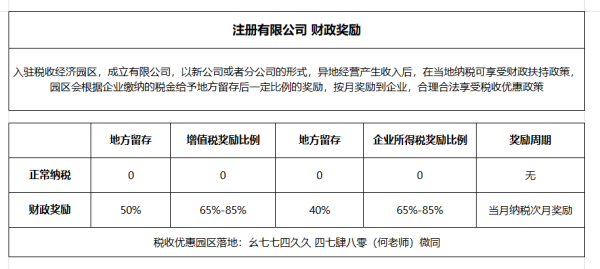地方财政奖励扶持:企业以总部经济的模式在有税收优惠的园区内成立有限公司,以新公司的名义承接原有业务,在园区进行纳税,随后享受一定比例的返税。
