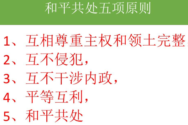 “和平共处五项原则”是20世纪50年代,我国政府为了发展同新兴民族国家尤其是邻近民族独立国家的关系,提出的五项外交基本原则。其表述几经斟酌,最后确定为:互相尊重主权和领土完整、互不侵犯、互不干涉内政、平等互利、和平共处。
