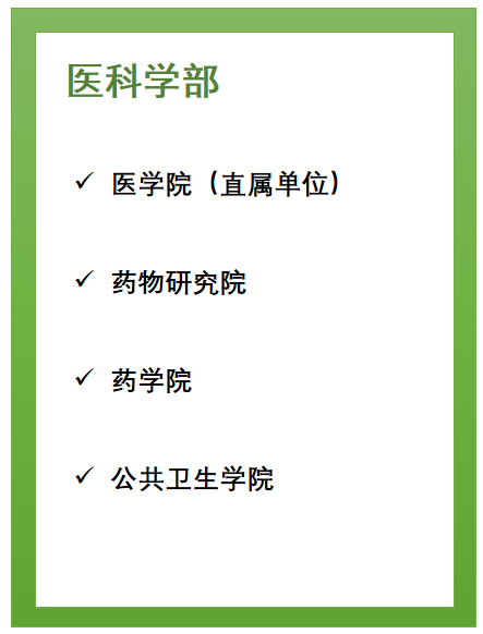 医学是郑州大学的特色专业,所以专门分出了一个学部,医学部主要由4个学院构成。包括医学院(直属单位),药物研究院,药学院,公共卫生学院四个下属学院。