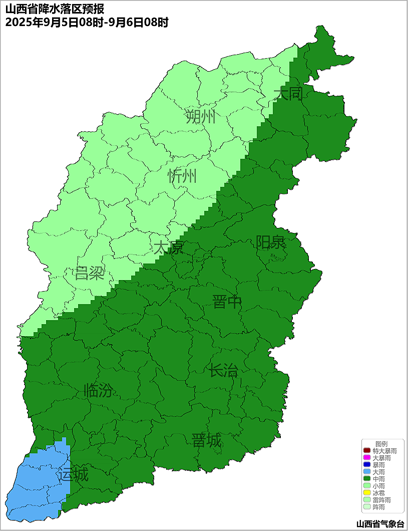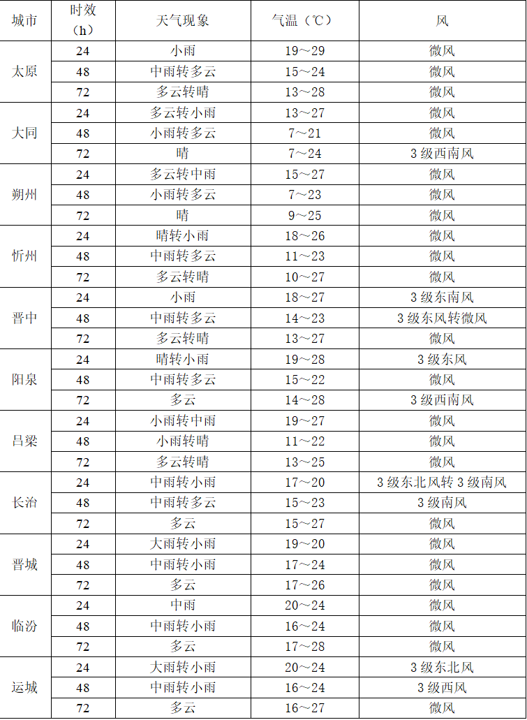 朔州、忻州、吕梁、临汾、运城的部分地区大雨