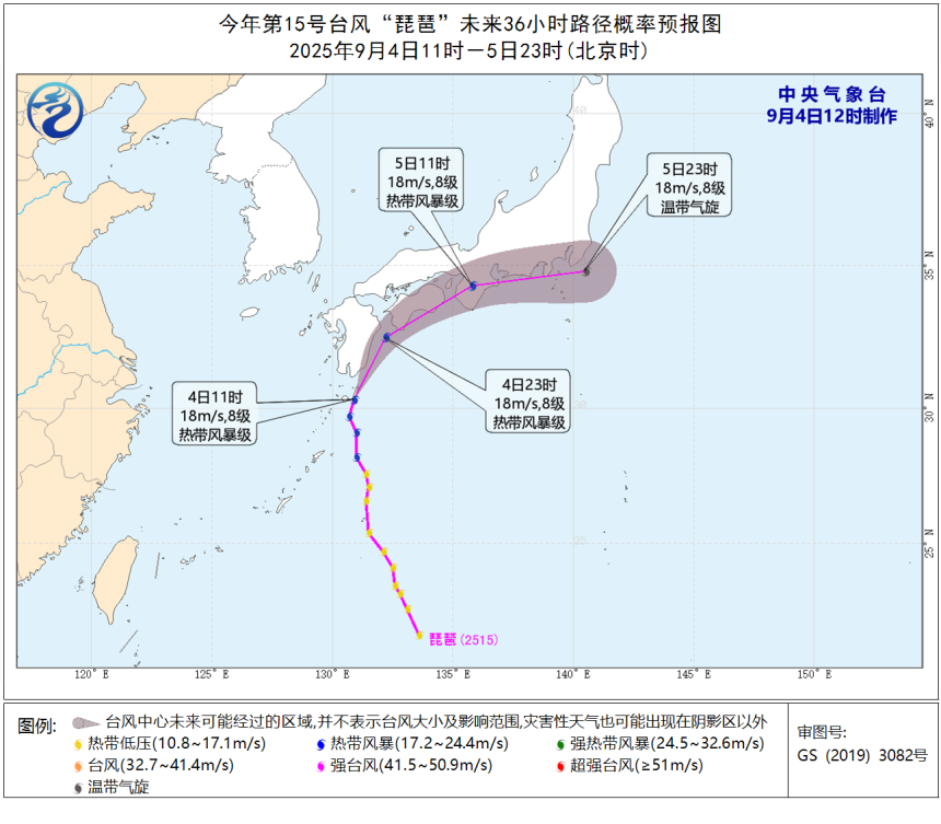 上海市气象服务中心介绍,琉球群岛以东洋面的热带低压,今天(4日)凌晨加强为今年第15号台风“琵琶”,上午11时其中心位于距离日本鹿儿岛南偏东方向约140公里的洋面上,中心附近最大风力有8级(18米/秒),中心最低气压为1002百帕。预计,“琵琶”将以每小时20-25公里的速度向北偏东方向移动,强度变化不大,逐渐趋向日本九州岛南部洋面,4日夜间转向东北方向移动。“琵琶”对上海无直接影响。