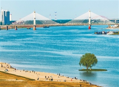 淮河干流蚌埠主城区段的金沙滩独树岛景点。