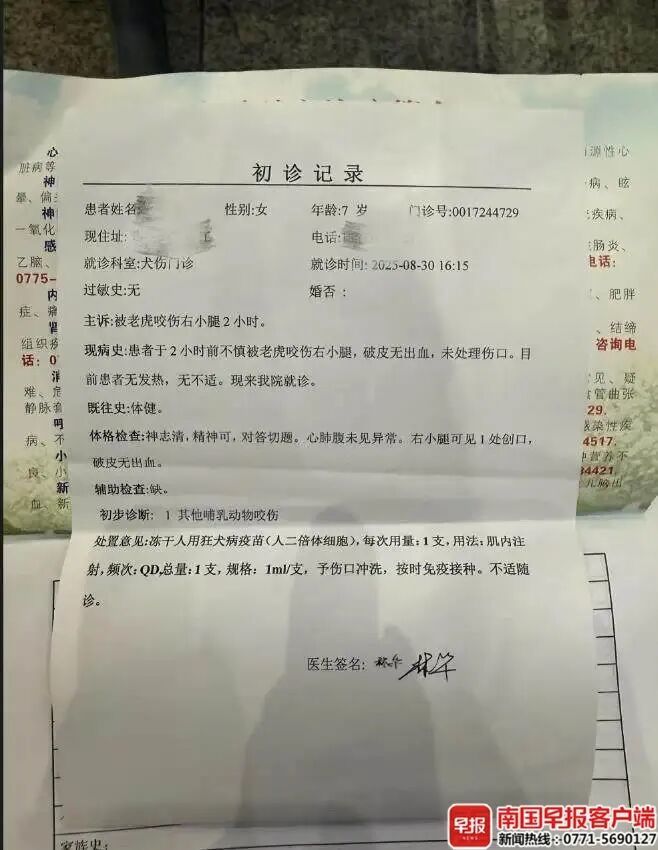 据了解,当天经医生处理,孩子伤口已消毒并接种首针狂犬疫苗,后续还需完成4针接种。景区称小老虎都是有进行安全检疫的,但还是尊重家长的意见陪伴其到医院处理“后面增加”已帮家长支付第一针疫苗费用508元,并承诺承担剩余相应疫苗费用,目前积极与家长对接落实,后续心理治疗费用仍在积极沟通。