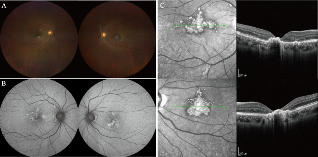 眼底检查影像更显示,她的黄斑有一些较密集的新旧病灶并存的累积性损伤,且损伤已累及深层组织,恢复希望渺茫。而这些病变提示视网膜强光损伤。