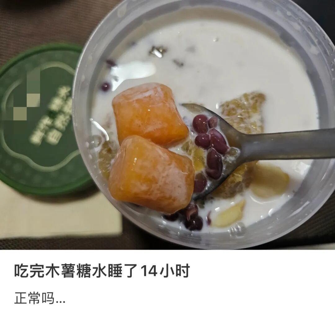 近日,有网友在社交平台上分享“吃完木薯糖水睡了14个小时”,引起其他网友共鸣。