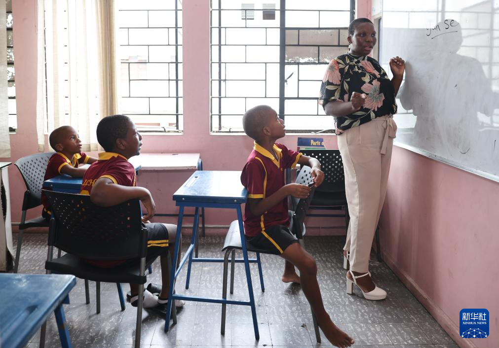 9月4日,在牙买加首都金斯敦艾特特殊教育小学,校长娜塔莎·拉塞尔在授课。新华社记者 李梦馨 摄