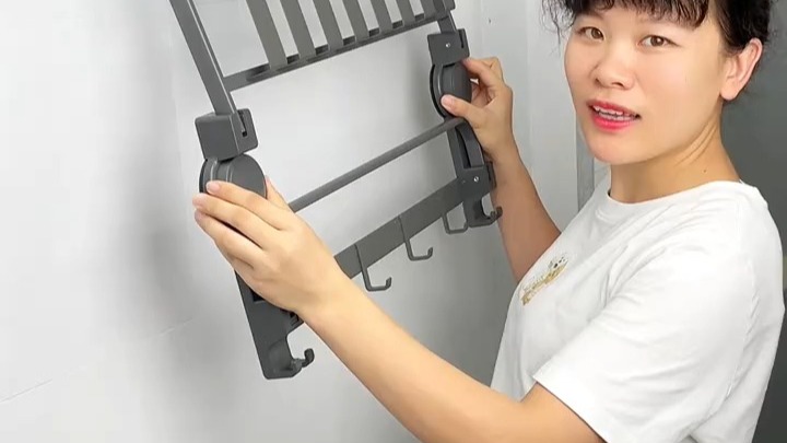 “免打孔浴室吸盘毛巾架,一贴即牢,轻松收纳好帮手!”
