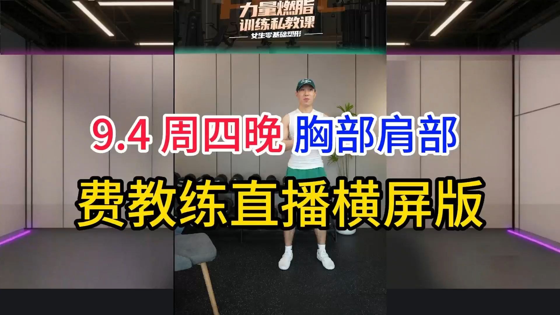 【横版!费教练直播回放完整版】9.4 周四| 胸肩+核心|女生塑形私教课力量训练 有聊天 无删减 全身燃脂训练 健身操 附带拉伸