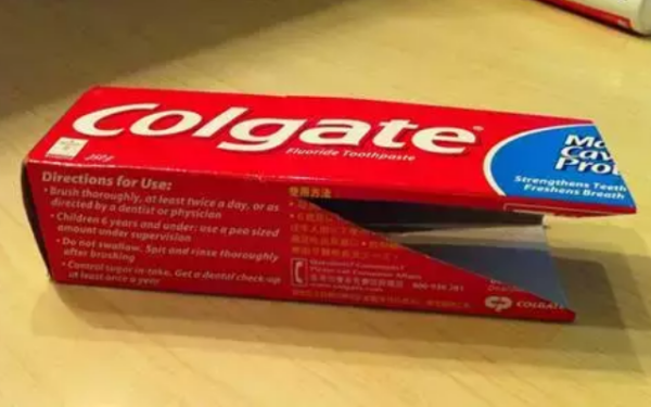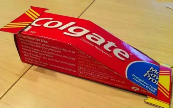 2,首先我们将牙膏盒裁剪成下图中所示的这样,开口角度在30度这样。