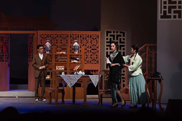 从西方绅士到谦谦君子,话剧以兼容并蓄的胸怀从传统戏曲中吸取养分。焦菊隐先生说:“以话剧之形,传戏曲之神。”话剧向戏曲借鉴不仅是摹仿其外在的形式,更重要的是“化”其内在神韵。《茶馆》中舞台调度的曲线美、念白抑扬顿挫的韵律美以及人物身姿台步的造型美,都是戏曲手法的集中体现。