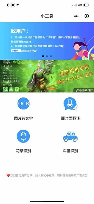 3、第三步打开“拍图识字神器”首页选择第一个拍图识字就可以进行操作了,可以拍摄与从相册上传。这样就可以实现提取图片文字了。这个小程序还有其他功能可以体验,使用完可以自己慢慢发掘更多功能。