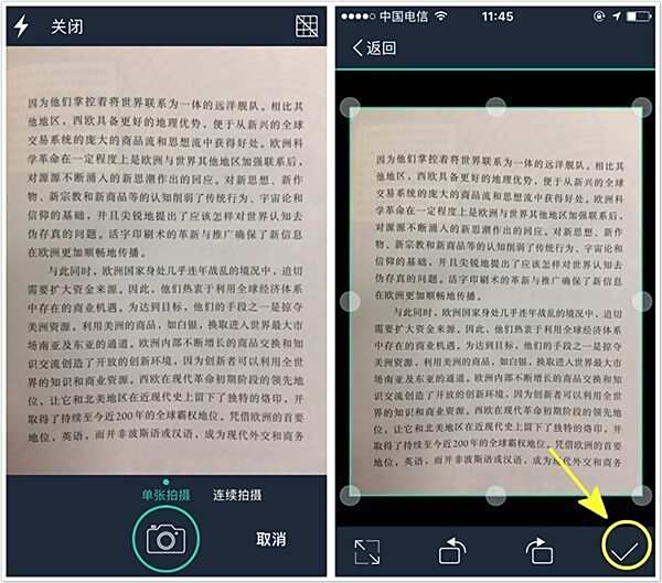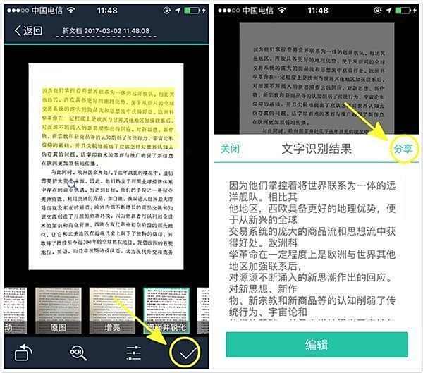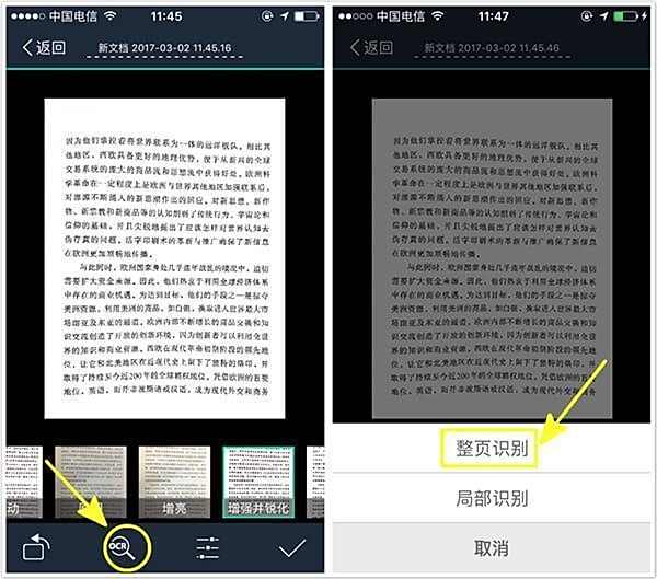 如果你使用的是普通版 APP,或者,并非扫描全能王高级账户,照样可以使用 OCR (识别图片中的文字)功能!但无法编辑、导出文字。强烈建议按需购买!点此查看免费版/付费版/高级账户区别。