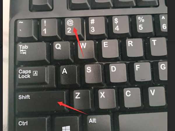 5、先按住键盘上的shift不放,在按一下数字键2,即可输入@。