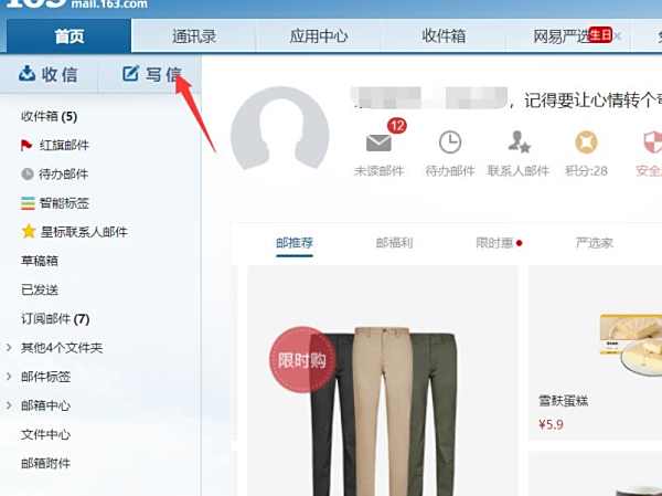 2、点击【写信】,各种邮箱网站大多类似,都是写信字样。