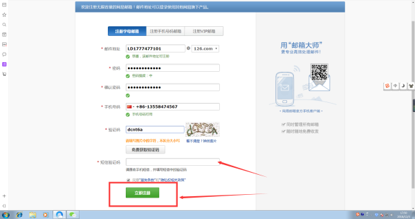 2、开始注册,并按照提示,设置邮箱地址,设置密码,之后再继续输入手机号,输入验证码。点击“获取免费验证码”。手机收到验证码,输入后点击“立即注册”即可。