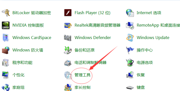 (2)然后在控制面板中找到“管理工具”,双击打开。