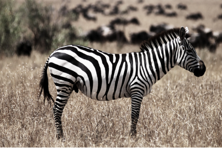 斑马是现存的奇蹄目马科马属3种兽类的通称。因身上有起保护作用的斑纹而得名。没有任何动物比斑马的皮毛更与众不同。斑马周身的条纹和人类的指纹一样——没有任何两头完全相同。斑马为非洲特产。