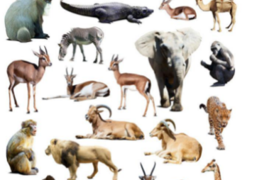 虎、狼、鼠、鹿、貂、猴、貘、树懒、斑马、狗、狐、熊、象、豹子、麝牛、狮子、小熊猫、疣猪、羚羊、驯鹿、考拉、犀牛、猞猁、穿山甲、长颈鹿、熊猫、食蚁兽、猩猩、海牛、水獭、灵猫、海豚、海象、鸭嘴兽、刺猬、北极狐、无尾熊、北极熊、袋鼠、犰狳、河马、海豹、鲸鱼、鼬。