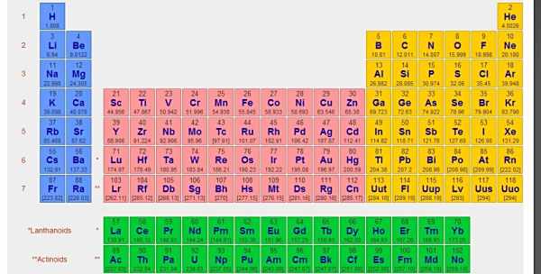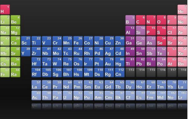 化学元素周期表是根据原子序数从小至大排序的化学元素列表。列表大体呈长方形,某些元素周期中留有空格,使特性相近的元素归在同一族中,如碱金属元素、碱土金属、卤族元素、稀有气体等。