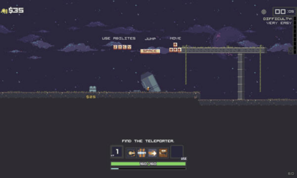雨中冒险risk of rain一款Roguelike的横版动作游戏,初始只有1个职业——突击队员(Commando),画风为点阵像素风格,但不影响其游戏性。
