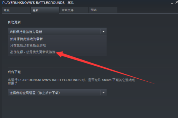 5、选择自动更新里的第三项“高级先级-总是优先更新该游戏”,这样即便是你之前没更新,现在也可以开始立即更新。