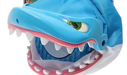 幸运大白鲨的构造非常简单,但玩起来却趣味无穷。方法是将大白鲨的嘴掰开,然后按它的下排牙齿,这些牙齿中只有一颗会牵动鲨鱼嘴,使其合上,如果按到这一颗,鲨鱼嘴会突然合上,咬住手指。当然,鲨鱼牙是软塑料做的,不会“咬”痛。