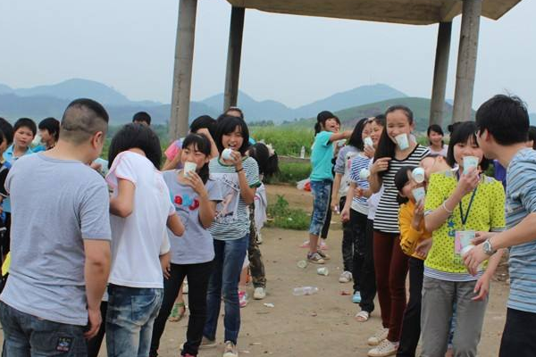 1、衔纸杯传水。八名一组,男女交替配合。共选十六名员工,分二组同时进行比赛。另有二名人士辅助组第一名人士倒水至衔至得纸杯内,再一个个传递至下一个人得纸杯内,最后一人得纸杯内得水倒入一个小缸内,最后在限定得五分钟内,看谁得缸内得水最多,谁就获胜。
