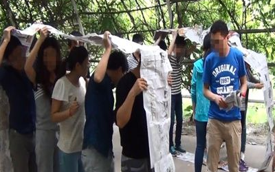 规则:将报纸粘成足够长直接的履带状圆圈,所有人都进入履带,手脚并用传动报纸向前移动,先抵达终点队伍获胜。