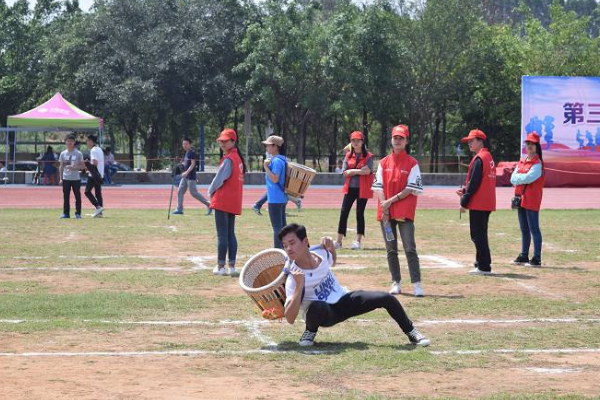 规则:后面人左手抬前方人左脚,右手搭在其肩膀上,以此类推,最后一人左脚也要抬起。最前冲过或最先接触到终点线的队伍获胜。