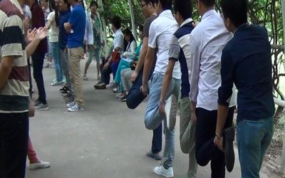 人椅是一个很有意思的趣味互动游戏,而且不需要任何的道具,所以做外春游户外游戏很适合。游戏在不可思议的情况下让大家体会到了团队和个人的完美结合,告诉大家团队不能离开任何人而存在,每个人必须找到自己的存在价值。