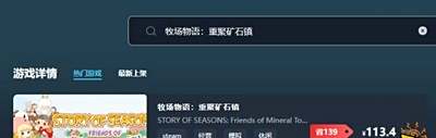 搜索牧场物语重聚矿石镇,可以看到,当前正在进行折扣活动,仅需113.4元。
