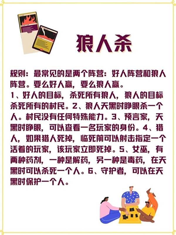 最常见的是两个阵营:好人阵营和狼人阵营。要么好人赢,要么狼人?赢。