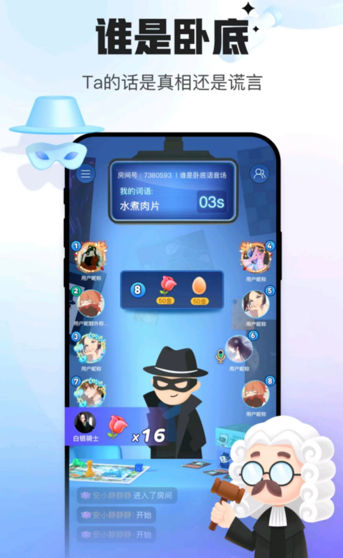 它是“王牌官方指定软件”,里面可以互动的游戏很多。比如说狼人杀、谁是卧底、嗨歌抢唱。