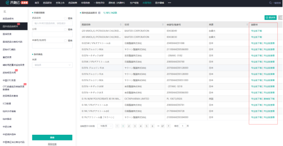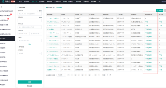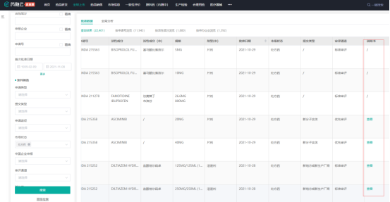 通过药品名称、活性成分、申报企业申请号等进行关键词的筛选,还能更具参比制剂、首仿药等进行条件筛选,搜索的结果,在最右侧有说明书文件,能查询相应的药品说明书。