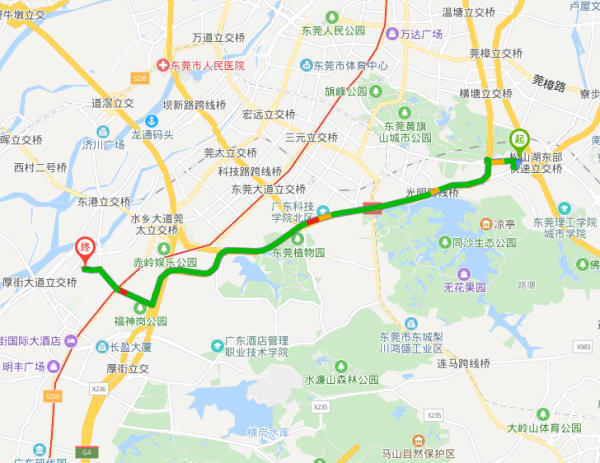 靠右前方行驶,进入环莞快速,行驶7.0公里